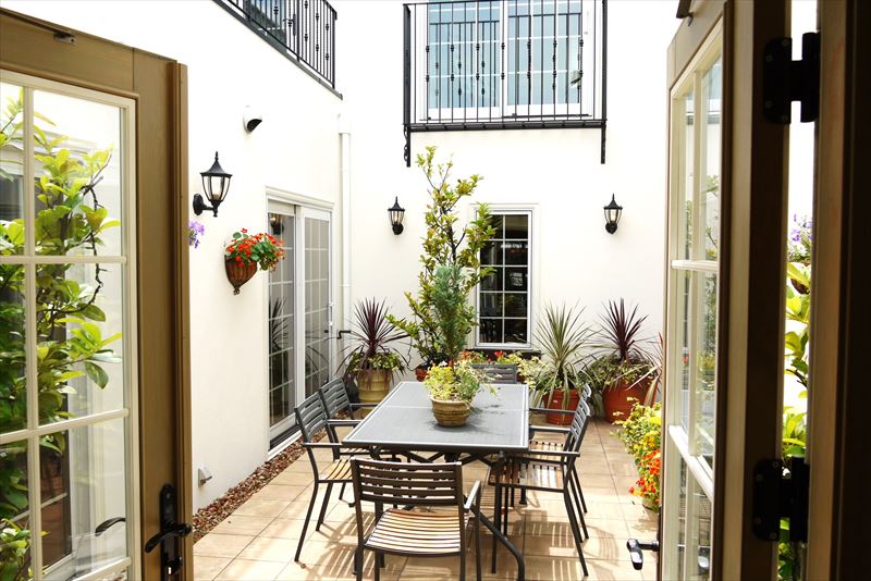 土の庭では雑草の管理が大変ですが、タイルの庭ではその手間をほぼなくすことができるでしょう。